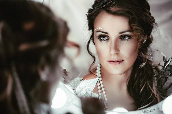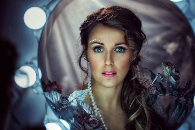 Eines der Bilder hängt heute hinter Glas direkt bei mir im Studio – neben dem Spiegel, der das Licht reflektiert, genauso wie Judys Augen in genau diesem Moment. Dieses Porträt ist mehr als nur ein Foto. Es ist für mich ein Fenster in diesen einen, perfekten Augenblick – Judy, umgeben von reflektierendem Licht, eingebettet in eine Aura aus Eleganz und Märchenhaftigkeit.
