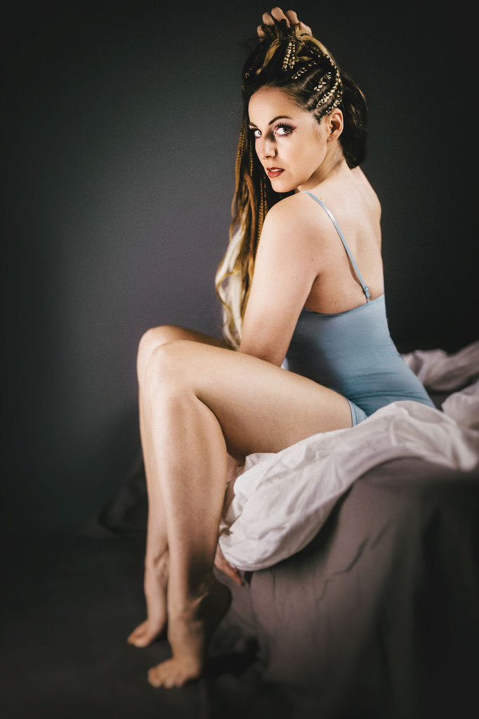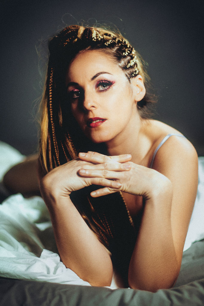 Der Wechsel ins Bett-Set brachte noch einmal eine andere Seite zum Vorschein. Sinnlich, ruhig, beinahe träumerisch. Ob wach oder schlafend – Judy wirkte ganz bei sich. In einer Szene lag sie ausgestreckt auf weißer Bettwäsche, die Zöpfe wie eine wilde Strömung um sie verteilt. In einem anderen Moment war sie eingerollt, geborgen in sich selbst, und trotzdem präsent wie selten zuvor.
