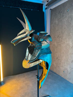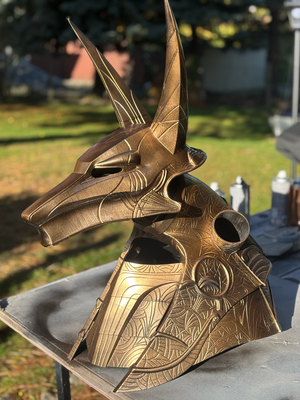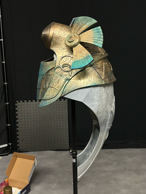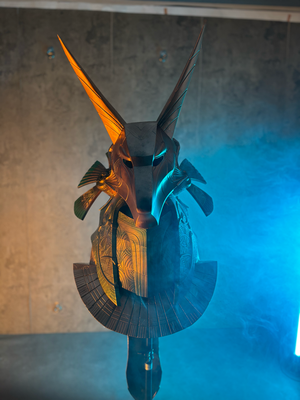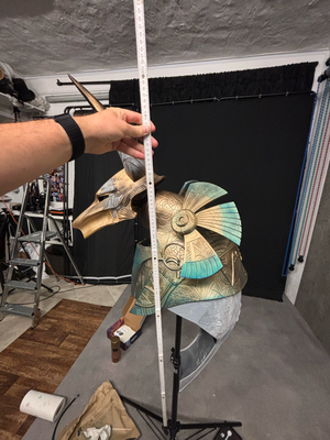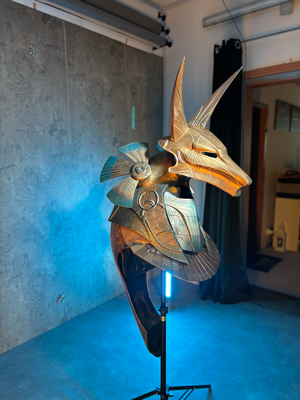 Grundierung – weil Anubis auch eine Basis braucht. Einmal komplett Schwarz – Tiefenaufbau, Baby. Darüber ein Goldbronze-Nebel – wie Staub aus einer verbotenen Grabkammer. Farblose Grundierung als Grundlage für den nächsten Schritt. Und dann der Zauberstab: Airbrush. Ganz sachte türkisblau an Kanten, Paneelen und in die Vertiefungen gehaucht. Genau der Hauch „antikes Alien-Hightech“, den Anubis zum Brummen bringt. Augen blau leuchten lassen – denn ohne Glühen keine göttliche Ansage. Ich trete zurück. Das Studio ist dunkel, nur er schaut mich an – blau glühend, goldbronzen, majestätisch. Hinter ihm die Drucker, müde aber stolz, als hätten sie gerade den Staffelstab durchs Sternentor getragen. Und ich? Ich grinse. Wie sollte es denn auch sonst sein? Big. Is. Bigger. Werkstatt-Funfacts (für die Nerds unter uns) Drucker: 2× Bambu Lab X1C + A1 Mini (Support-Act meiner Frau)