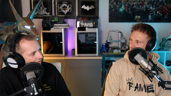 Wir haben dort weitergemacht, wo kreative Gespräche ohnehin am liebsten stattfinden: zwischen Kameras, 3D-Druckern, Requisiten und Kaffee. In dieser Atmosphäre sprechen wir über unsere Anfänge, über lustige Gegebenheiten, die uns bis heute prägen, und darüber, wie viel Mindset im täglichen Machen steckt – vom „einfach anfangen“ bis hin zu „keine halben Sachen“.